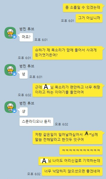 A가 마음이 정리가 덜 되었을 때, 친구로 남고 싶다고 이야기 하였었는데 그에 대한 답장으로 J창을 다시 하는건 힘들겠지? 라며 장난을 쳤었다고 함.
